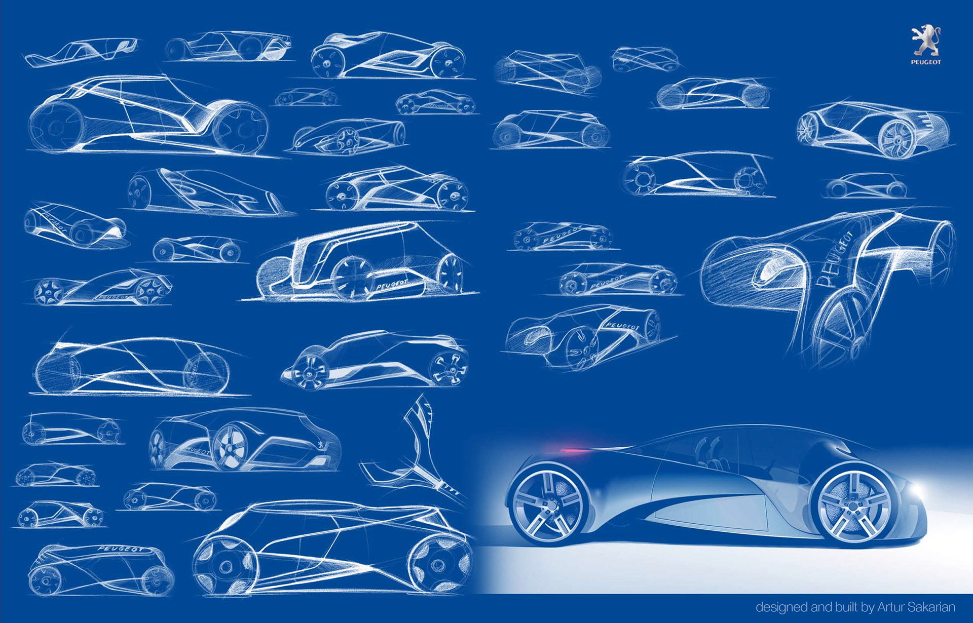 Designed and built with polygon modeling using Maya, except for wheels/tires and slight post retouching.